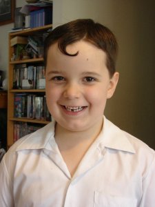 The kids all had their hair cut this afternoon under varying degrees of duress. Caitlin wants hers to be long enough to sit on so she’s adamant that only the bare minimum be trimmed off, David simply hates getting it done and winces every time the scissor come near. Tom had a new challenge for me this time, he decided he was immovably attached to a particular curl in the middle of his forehead. So I let him keep it.