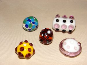 Two silver foil-lined beads and one with silver wire wrapped round it. I need to play more with the wire, I couldn’t find the right spot in the flame and kept burning through the wire as I applied it to the bead.