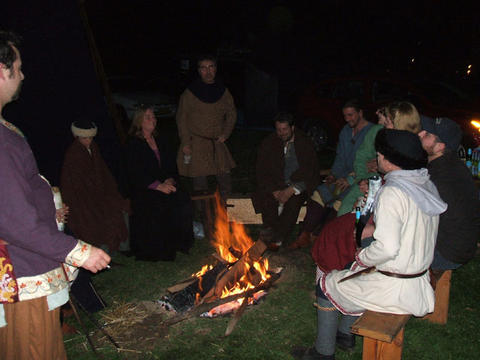 Soon after lunchtime on Saturday preparations for dinner began, on the menu was a dark ages style beef stew, bread and home brew. Tom was well pleased at being allowed to help by throwing all the food scraps in the fire, small boy + burning stuff = bliss.