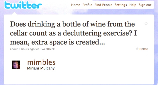 Tonight I cooked a rather awesome even-if-I-do-say-so-myself Thai red chicken curry for dinner and Adam asked if I wanted to open a bottle of wine. One of the reasons I don’t usually drink during the week is that when I’m tired all it takes is a glass or two to leave me feeling very woozy indeed and once that happens you can kiss goodbye any hope of me doing anything useful. So I felt I needed some outside input into the decision making process: