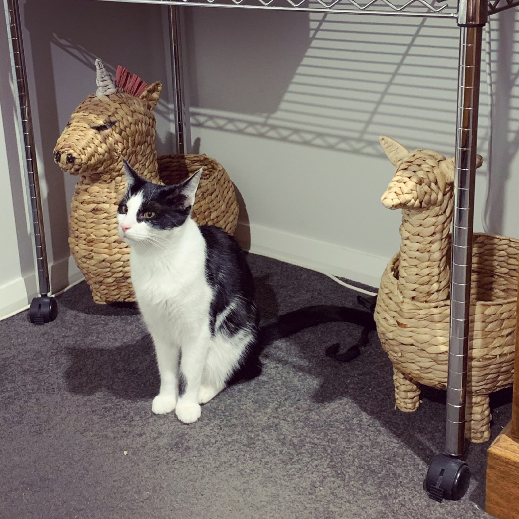 I’m not quite sure what is happening here. Has Jarvis defected to the basket side? Or has he dragooned #unibasketcorn and #storagellama into his own private army? Will he ride into battle astride a woven one or is he more likely to curl up inside and go to sleep? Also, what are they all looking at?