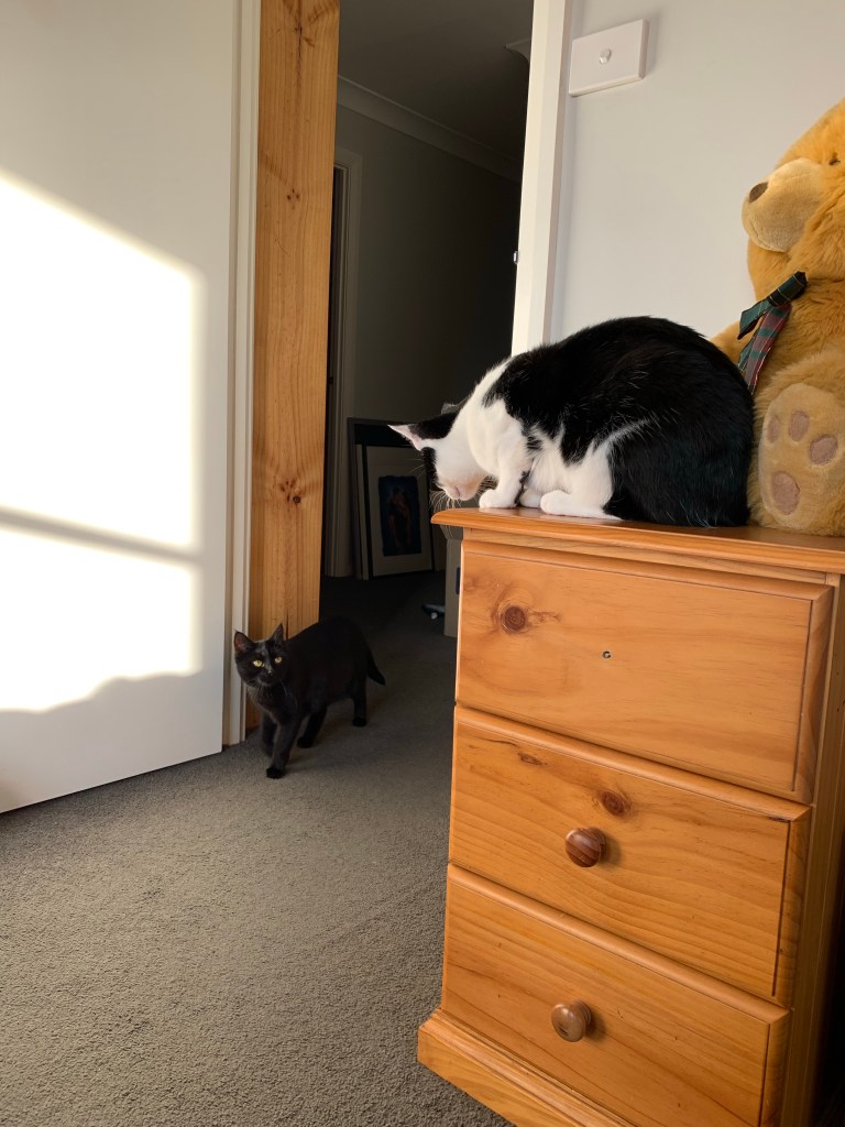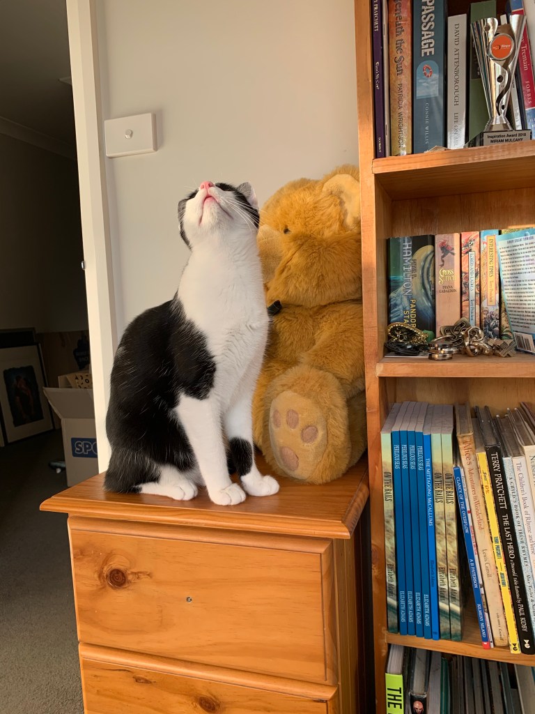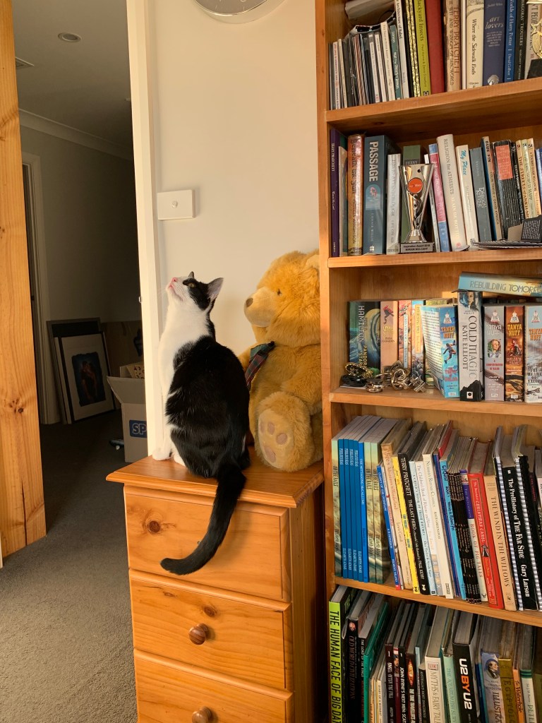 Jarvis wonders who else he can ask. #owlsandbag, engaged in the Very Important Job of keeping the door open, stays silent and does not share what he has seen.